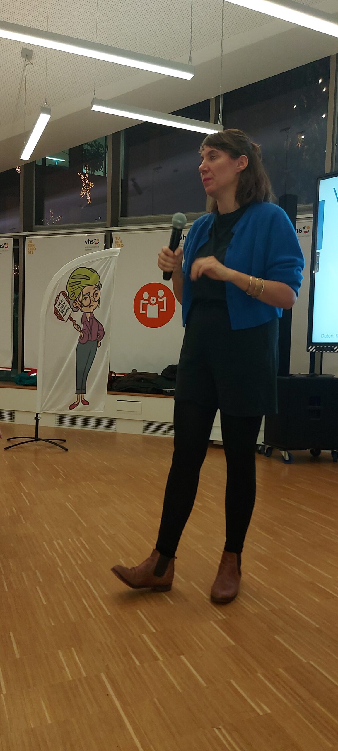 Am 8. Mai 2025 luden die vhs Münster und die OMAS GEGEN RECHTS Münster zu einer besonderen Veranstaltung ins vhs-Forum ein: Unter dem Titel „Wohin muss sich unsere Demokratie entwickeln?“ diskutierte die bekannte Aktivistin und Autorin Marina Weisband vor rund 160 interessierten Gästen über die Zukunft der Demokratie.In dem bis auf den letzten Platz gefüllten Saal gab Weisband der Moderatorin Angelika Wegert von den OMAS GEGEN RECHTS sowie dem Publikum zahlreiche Denkanstöße. Mit ihren differenzierten Ausführungen und ihrem leidenschaftlichen Appell ermutigte sie alle Anwesenden, sich weiterhin mit Mut und Ausdauer für eine lebendige und widerstandsfähige Demokratie einzusetzen.Die große Resonanz auf die Veranstaltung zeigt: Das Interesse an gesellschaftlichem Engagement und demokratischem Austausch ist in Münster ungebrochen.(Bericht und Aufzeichung der Veranstaltung mit Marina Weisband)